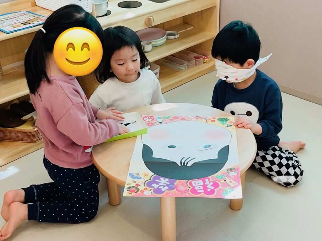 充実した年末年始をご家庭で過ごしてきた子ども達。久しぶりの登園では、少し涙がでる子もいましたが、長いお休み中に色々な経験をし、ご家族との時間の中で十分に満たされ一段と成長した姿もみられました。